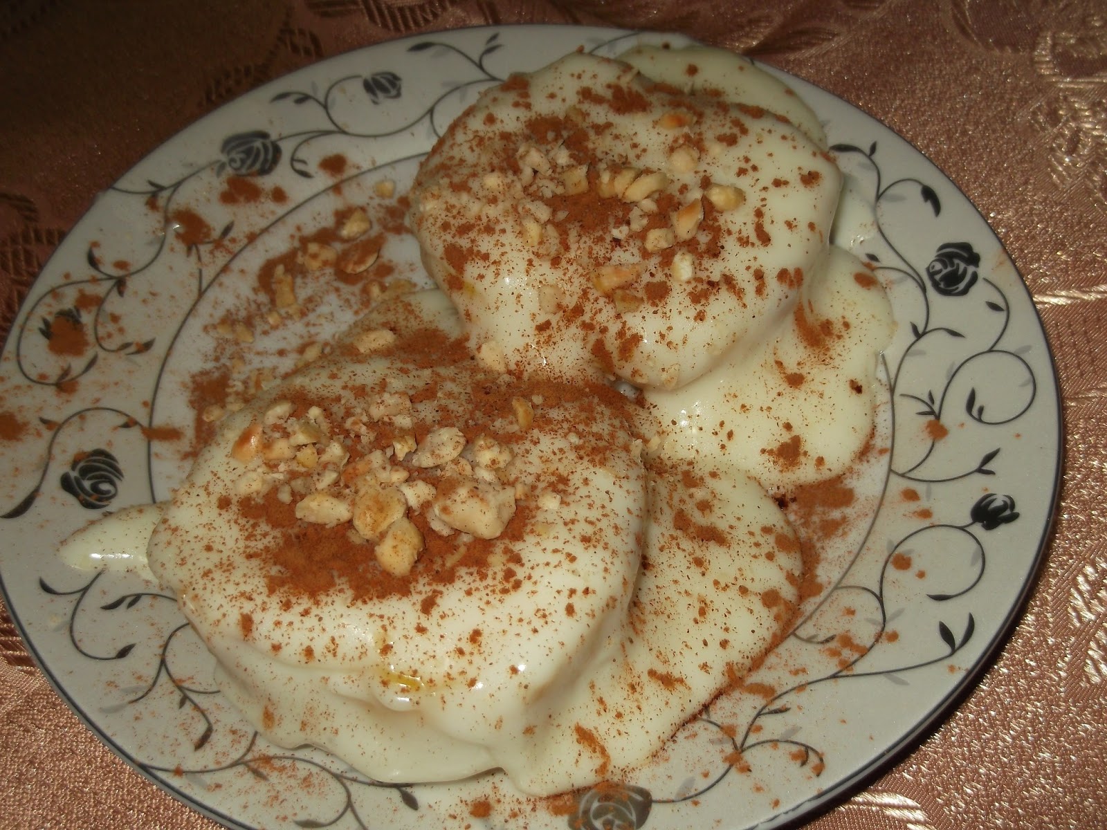 piştikten sonra vanilyalı kremayı üzerine dökelim. Tarçın, dövülmüş ceviz parçalarıyla süsleyelim. Kremayı döktükten sonra, dolapta soğutmaya bırakalım.