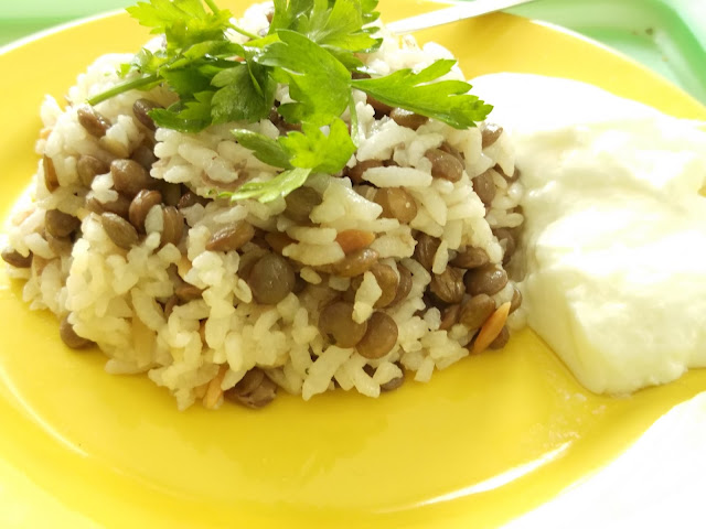 Mercimekli pirinç pilavını çocukluğumdan beri çok severim. Sizlere de bir fikir olsun diye tarifini yazmak istedim. Normal pirinç pilavını hazırlıyoruz. Bire bir buçuk ölçülerde. Bir taraftan da bir su bardağı ayıklanmış ,yeşil mercimekleri haşlıyoruz. haşlarken içine bir kuru soğanı bütün olarak koyarsanız daha lezzetli oluyor deneyin derim. Pirinç pilavı piştikten sonra demlenmeye bırakalım. Mercimeklerin suyunu süzdükten sonra, üzerine tane karabiberleri çekelim değirmenle. Pirinç pilavı ile haşlanmış mercimekleri karıştıralım ve kaselere döküp servise hazırlayalım. yanında cacık ve ya yoğurt unutmayın. Afiyet olsun...