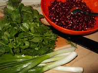 Akşamdan ıslattığım buğdayları bu gün haşladım. Taze soğan, maydanoz, dere otu yıkayalım, ince ince kıyalım. Malzemelerimiz :