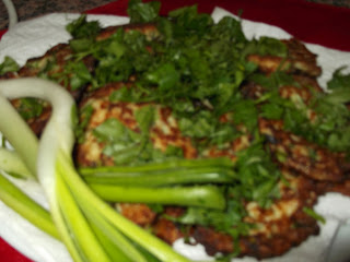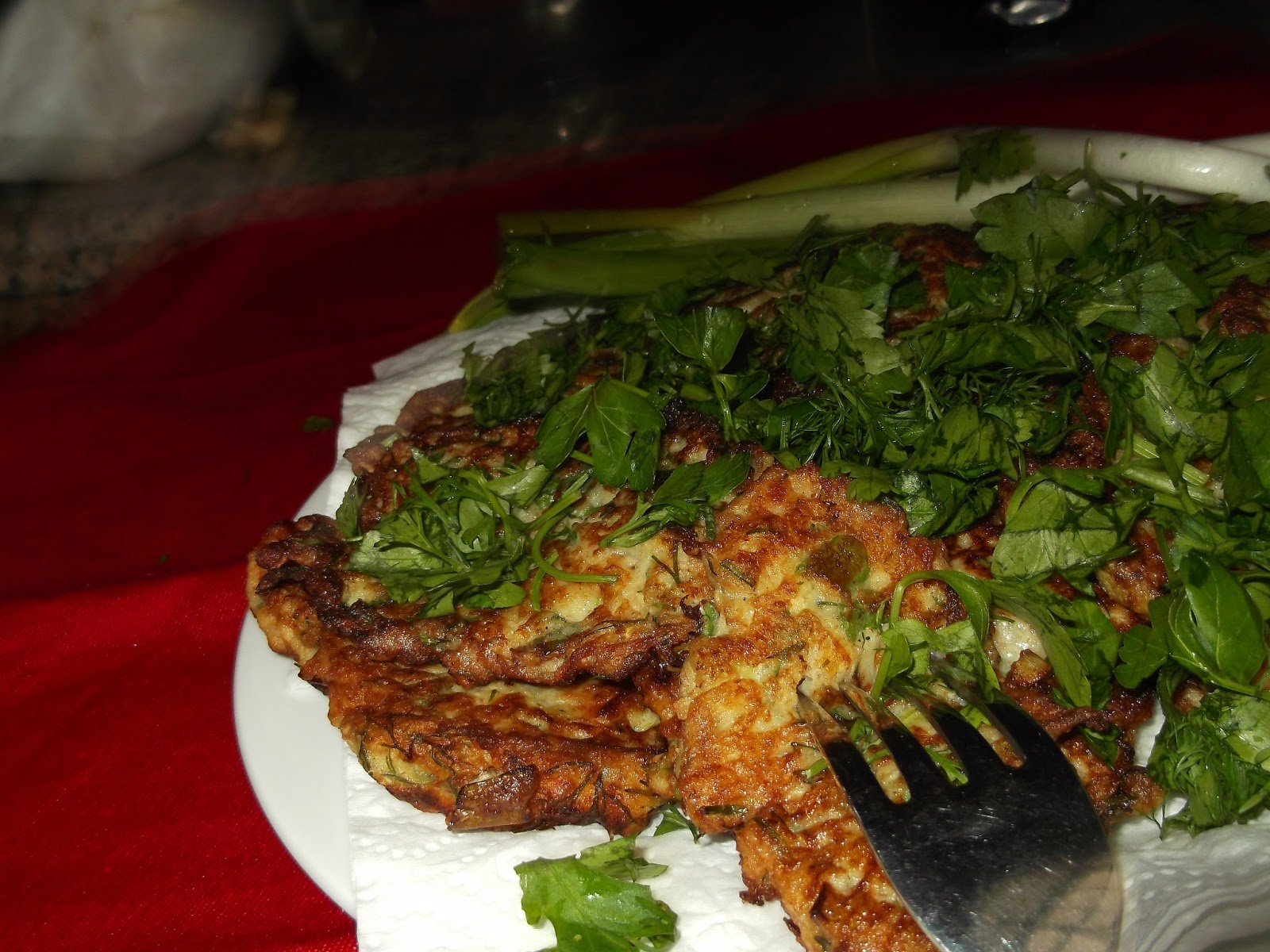 İki taraflı kızartalım. Kağıt havlu üzerine kızaranları alalım, yağını emmesi için. Servis tabağına yeşilliklerle birlikte servis yapalım.