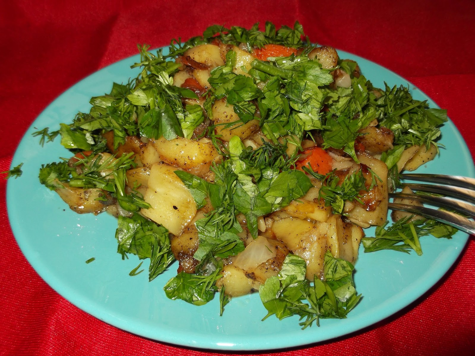 Patatesler yumuşayana dek karıştıralım. Tuz ve karabiberini ilave edelim. Servis tabağına alalım ve maydanoz, dere otu, taze soğanlarla süsleyelim.