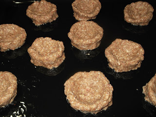 Köftelik kıyma harcını elimizde ceviz kadar topları kase şekline getirelim Yağlı fırın tepsisine dizelim. Tepsinin içinde de şekil verebiliriz. Ortalarına püreyi koymak için şekil vermemiz gerekli.