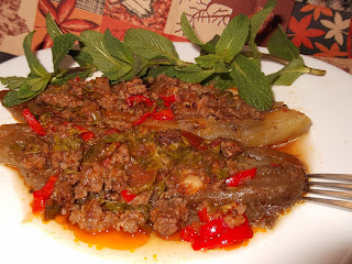 Sevgili blog arkadaşlarım merhaba, mutlu pazarlar diliyorum hepinize. Bu gün havadan sudan bahsetmeden, sadece yemeğimden bahsetmek istiyorum. Çoğumuz patlıcanı severiz. Hele karnıyarık nefis olur, lakin kızartma ağır oluyor.. Malum diyette olunca uzak durmak gerekiyor. Ben de közlenmiş patlıcanla yapmayı denedim. Yağda kızarmış patlıcan yağı çok emer, ama közlenmiş daha hafif oldu. Geçen yaz yeğenim Ebru bahsetmişti ( kendisi pek kalori hesabı yapar ) Hiç denememiştim. Gayet güzel oldu közlenmiş patlıcanın tadı da bir başka oluyor, hepinize bir kez olsun, denemenizi tavsiye ediyorum. Hemen yapılışına geçelim, önce malzemelerimizi hazırlayalım.