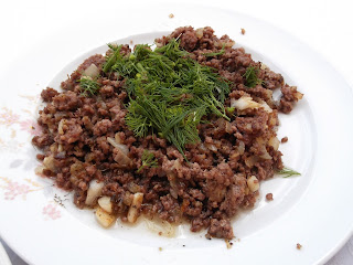 Gelelim kıymalı harcı hazırlayalım. Tavada önce kıymayı suyunu salıp, çekene kadar soteleyelim. Üzerine önceden hazırladığımız, küp şeklinde kıydığımız, yemeklik soğanı ekleyelim. Tuzunu ve karabiberini de koyduktan sonra karıştıralım.
