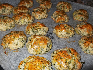 Derin bir yoğurma kabının içine önce sıvı malzemeleri karıştıralım. Daha sonra elenmiş un, kabartma tozu ,tuzunu ekleyelim. En son kıyılmış dere otunu karıştıralım ve hamuru yoğuralım. Hamurdan küçük toplar halinde alalım ve elimizde yuvarlayalım. Tepsiye dizmeden önce, fırını 180 derecede ısıtalım. Ayırdığımız yumurta sarısını topların üzerine sürelim. Kızgın fırına koyalım.30 dakika da pişirelim. Afiyet olsun.