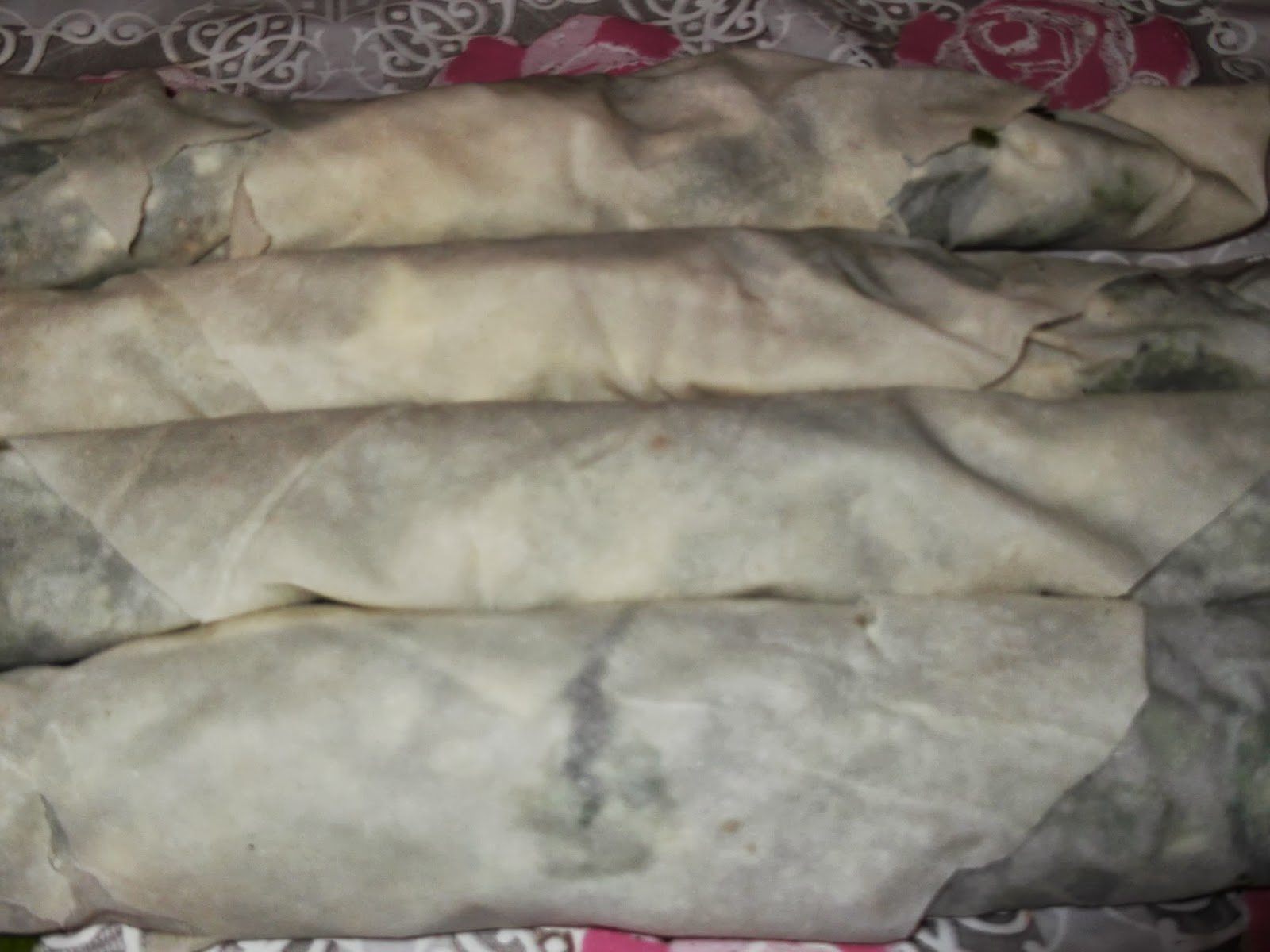 Yufkayı masada açıp, dörde bölelim. Ispanaklı peynir harcını paylaştıralım. Sigara böreği gibi saralım ve yuvarlayarak bir tepsiye dizelim. Ayrı bir kasede yumurta ve sıvı yağı çırpalım. Yağın ölçüsünü vermedim. Kendinize bırakıyorum. Sardığımız börekleri bu karışıma batırıp ,tepsiye dizelim. Kızgın fırında pişirelim.