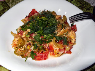 Öğle yemeğimizi, deniz kenarında, bir restoranda, yediğimiz için, akşama daha hafif bir yemek düşündük aklımıza menemen geldi. Hepimizin bildiği, yapılışı pratik, menemeni hazırladık.
