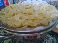 5-Haşladığımız yarım paket makarnayı serpiştirelim. Üzerine yufkayı örtelim. En son iç olarak peynirli harç ve üzerine yufka .Sıvı karışımı en son sürelim ve dilimleyelim. Fırını da 170 derecede ayarlayıp, nar gibi kızarana dek pişirelim.