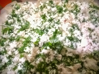 3-Yufkayı yağlı tepsiye yayalım ve üzerine bu sıvı karışımdan sürelim her yerine gelecek şekilde.