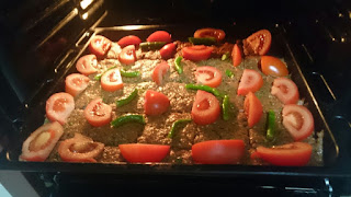 ve biber dilimleri koydum Fırında 175 derecede pişirdim.